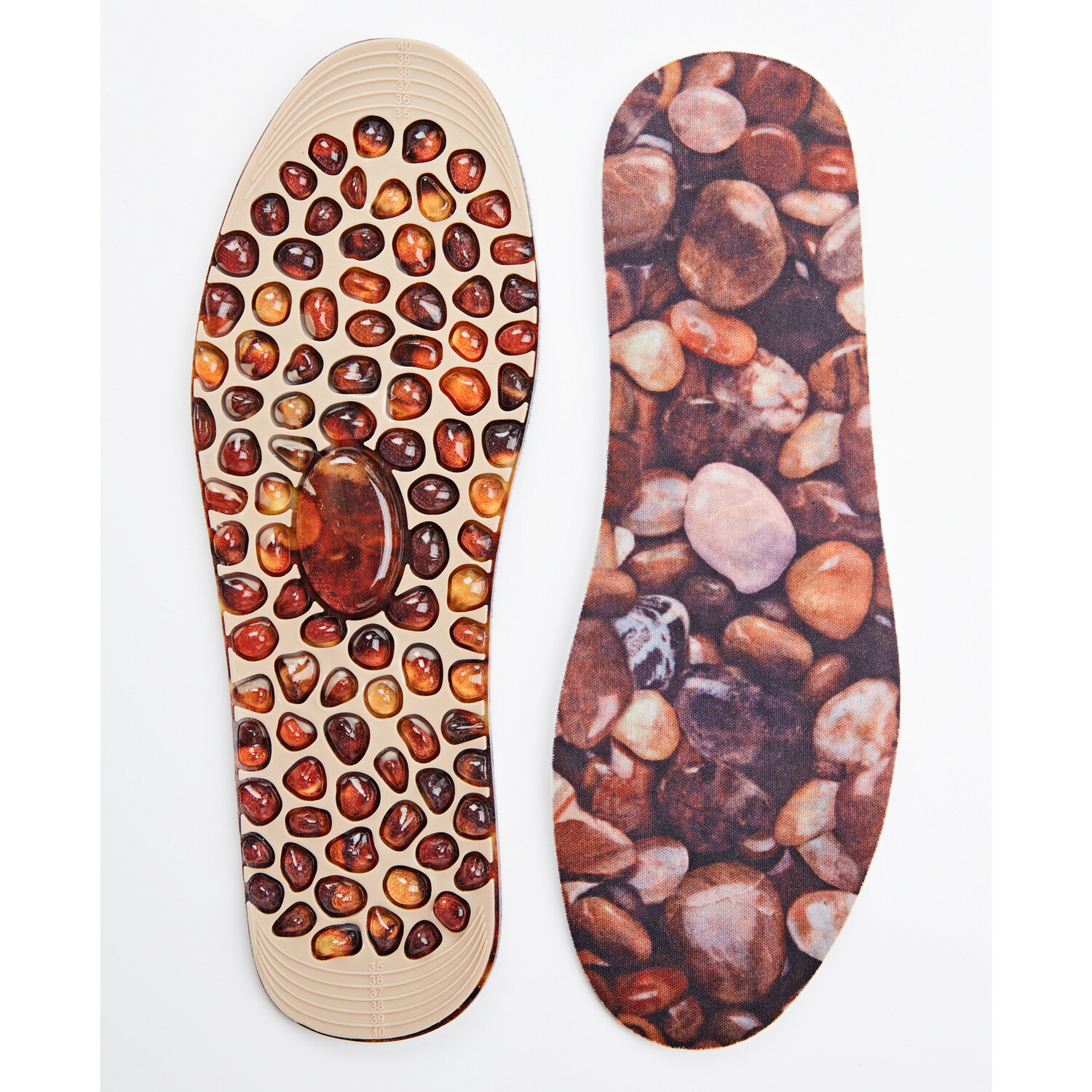 Wkładki amortyzują wstrząsy, a stymulujące poduszeczki akupresurowe przeciwdziałają zmęczeniu stóp, dopasowują się do kształtu stopy, wspierają łuk stopy i równowagę. Magnesy przyczyniają się do rozluźnienia i masażu. Nie stosować w przypadku posiadania rozrusznika serca. EVA/welur/magnes. Rozmiar S, M, L (możliwość skrócenia na miarę). Prosimy podać żądany rozmiar w zamówieniu. Zwalczają zmęczenie stóp. Amortyzują wstrząsy.