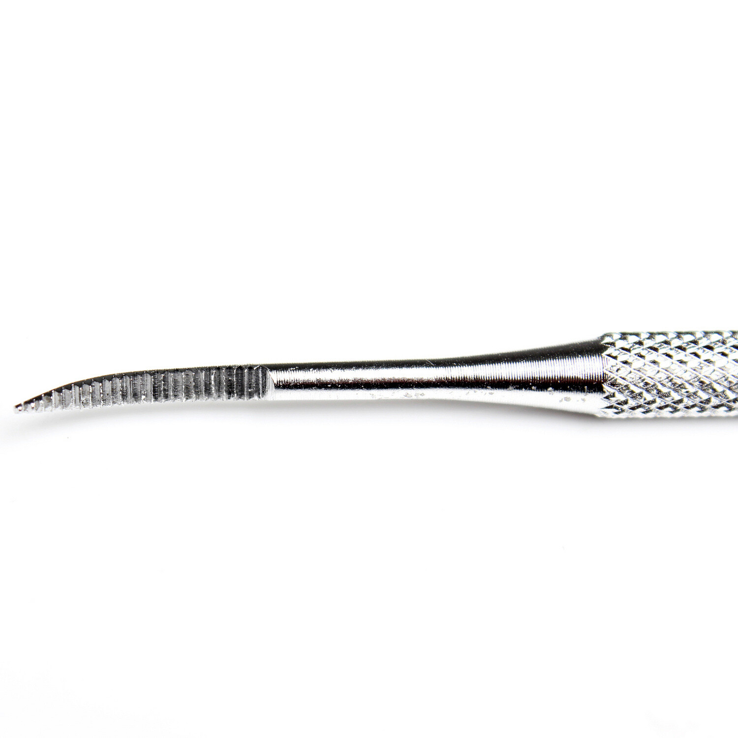 Jakość z Solingen, z dodatkiem proszku szafiru. Grube ziarna piłują paznokcie do pożądanego kształtu, a drobne ziarna idealnie wygładzają krawędzie paznokci. Praktycznie zaokrąglona i ergonomicznie ukształtowana pilniczka może być używana bez wyślizgiwania się z dłoni, nawet przy opuchniętych palcach lub artretyzmie. Nadaje się również do podróży.