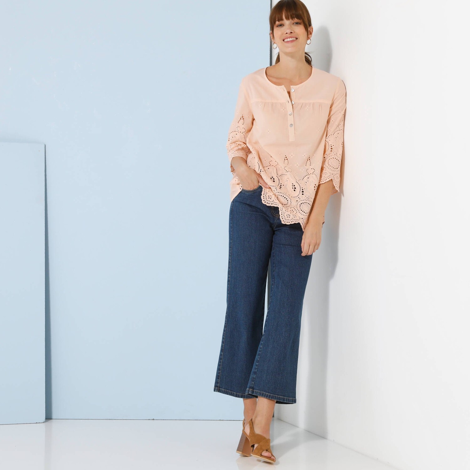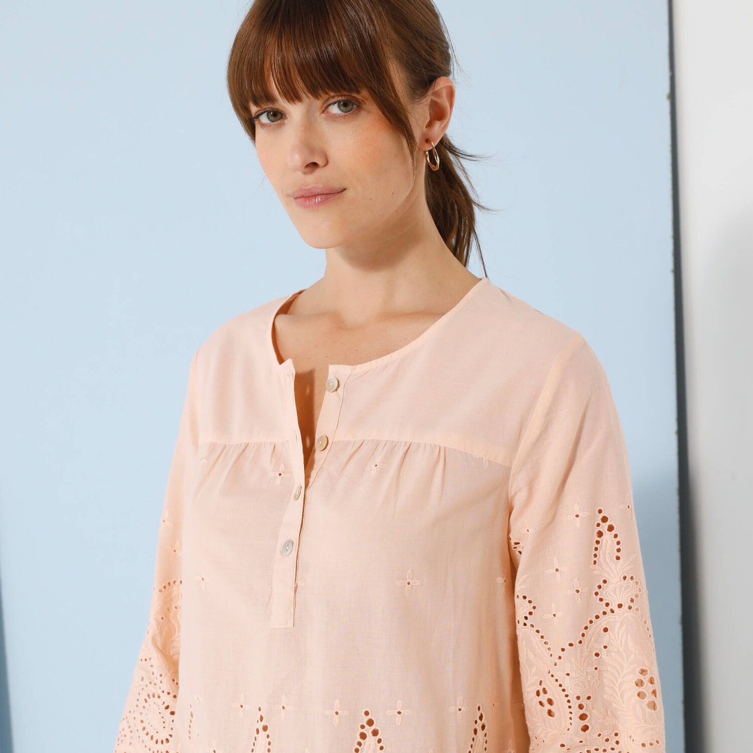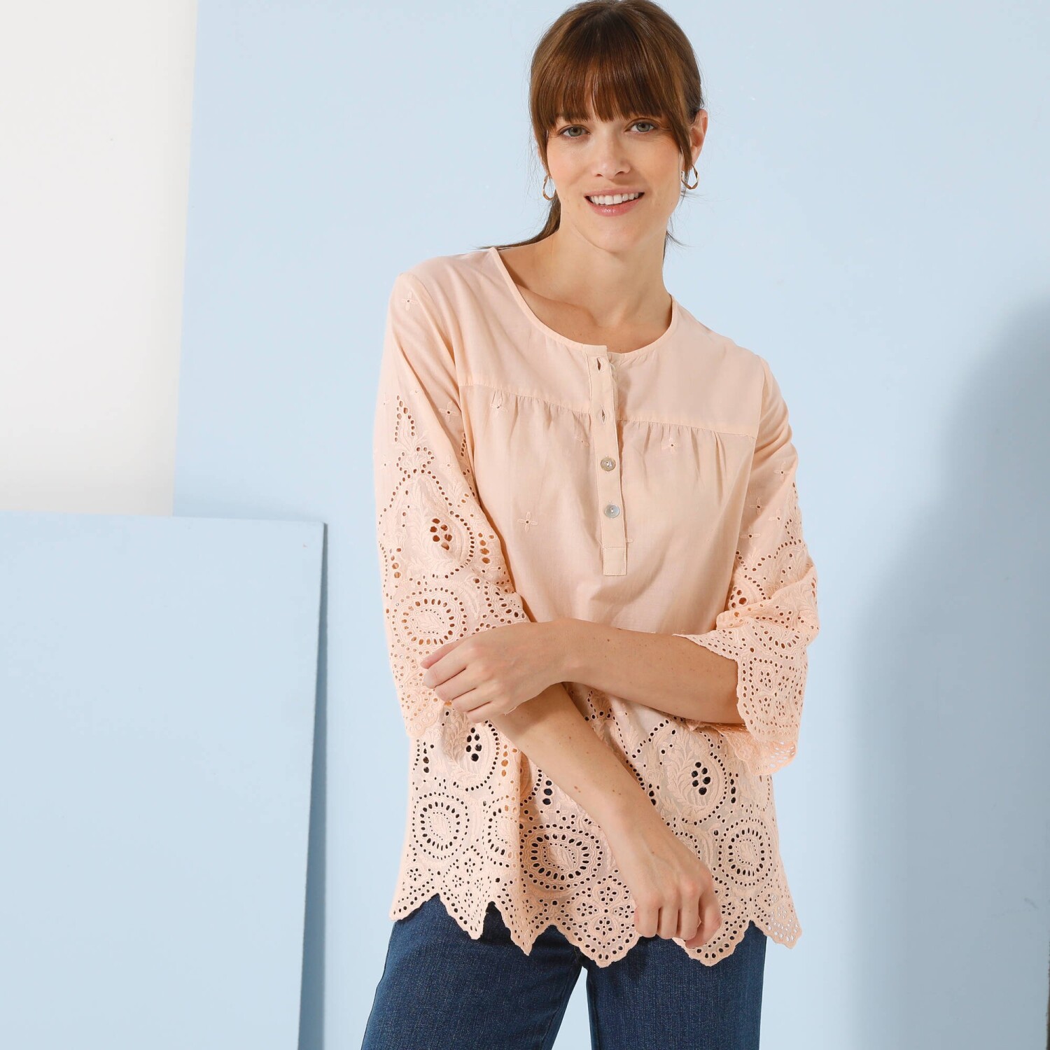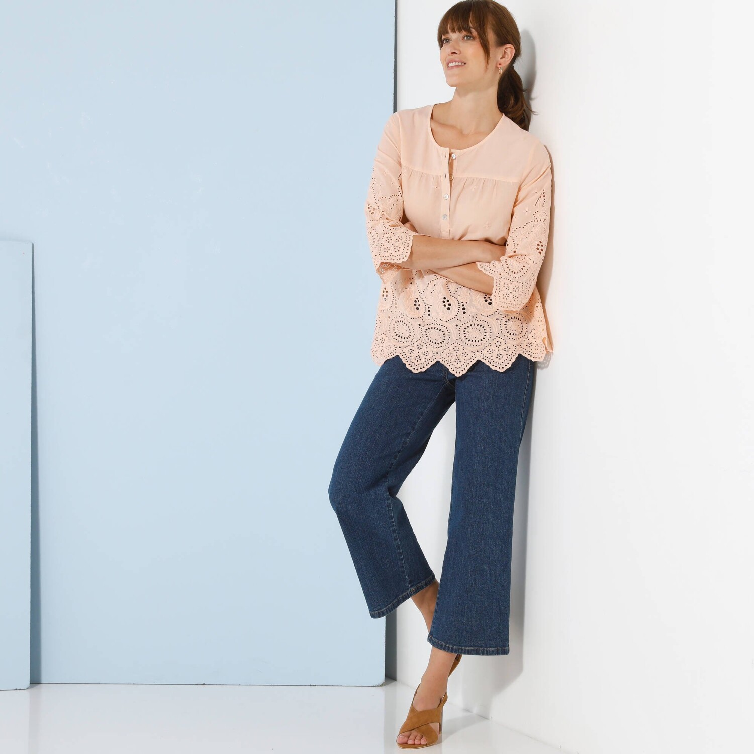 Bluzka Madeira z okrągłym dekoltem z guzikami i rękawami 3/4