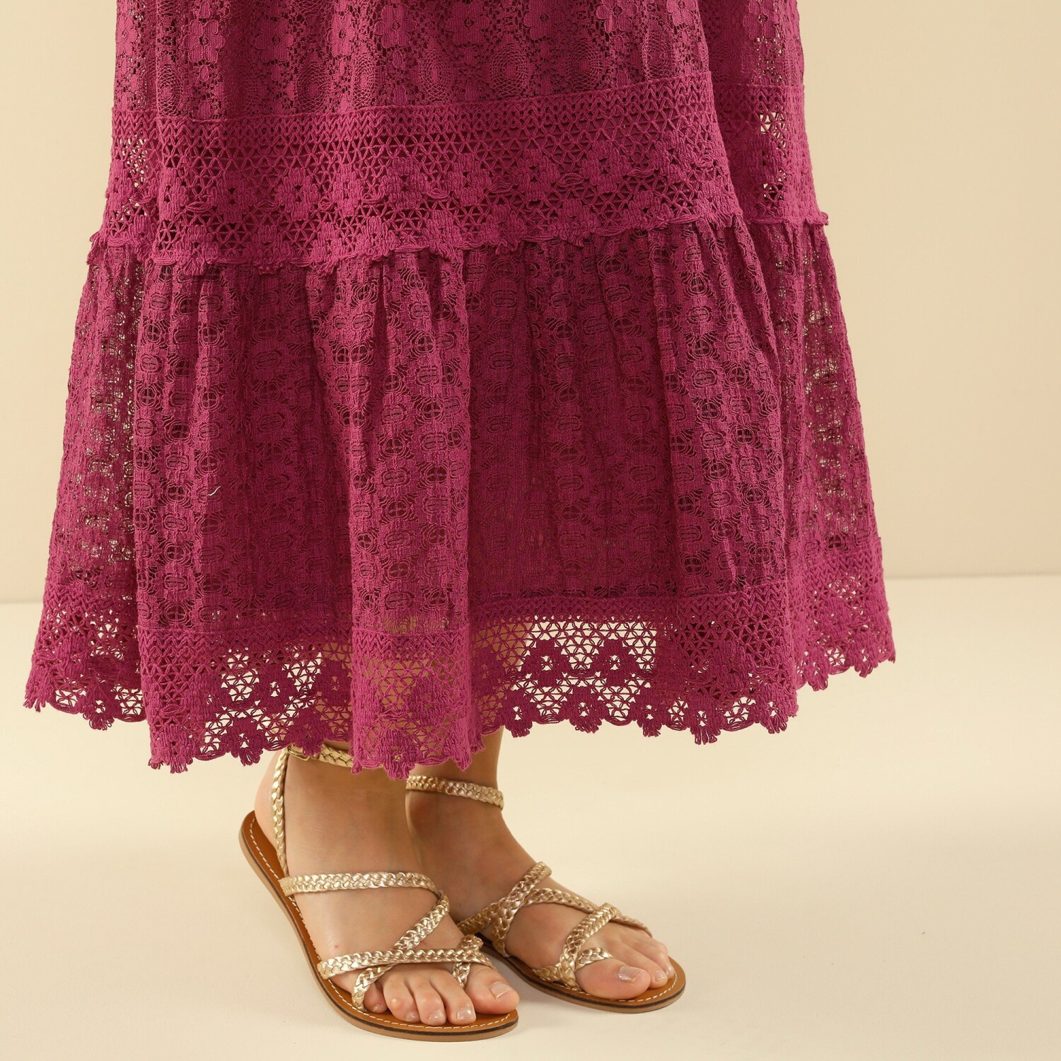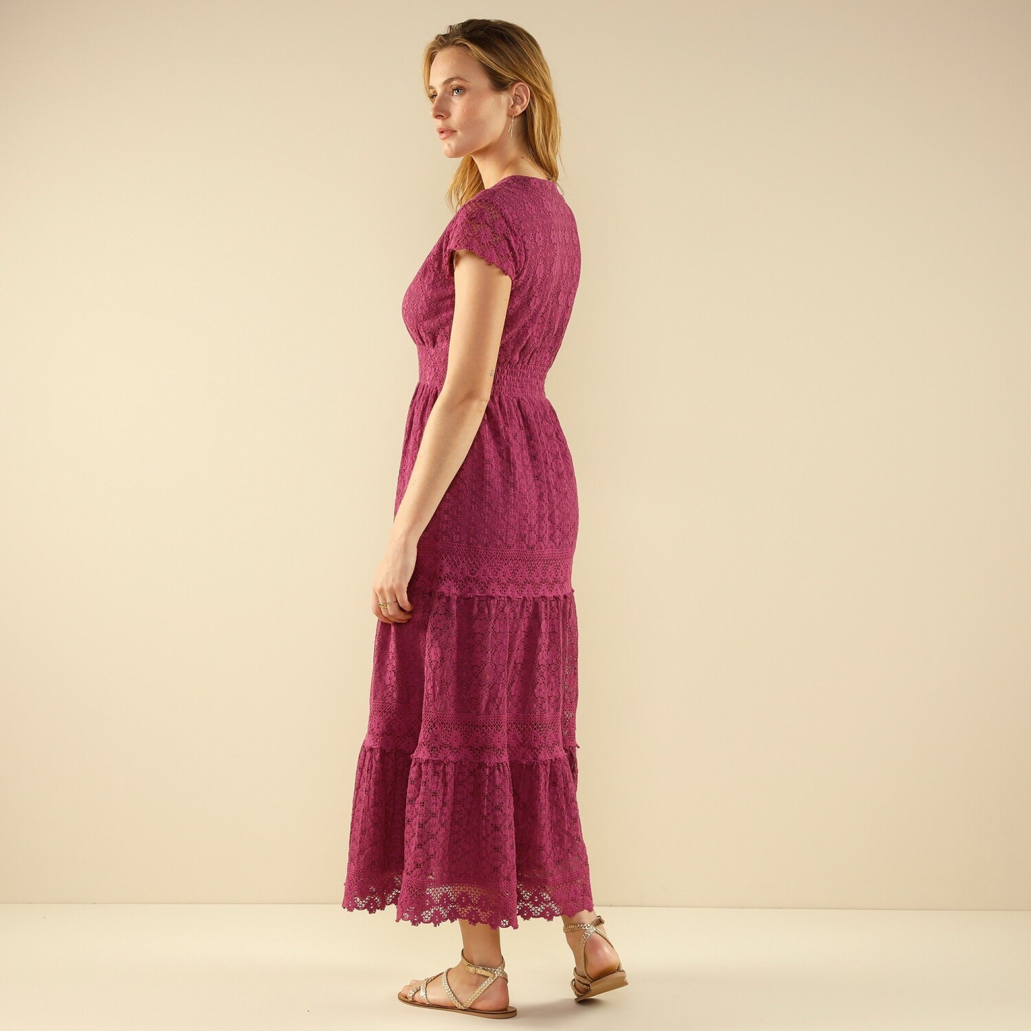 Lekka, efektowna i wygodna, to letnia sukienka par excellence. Dekolt w szpic. Bez rękawów. 3 falbany poniżej talii. Można prać w pralce.