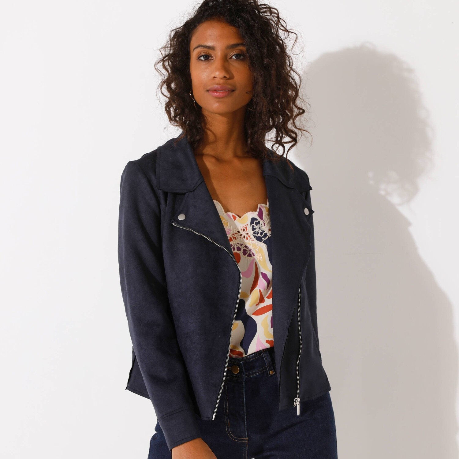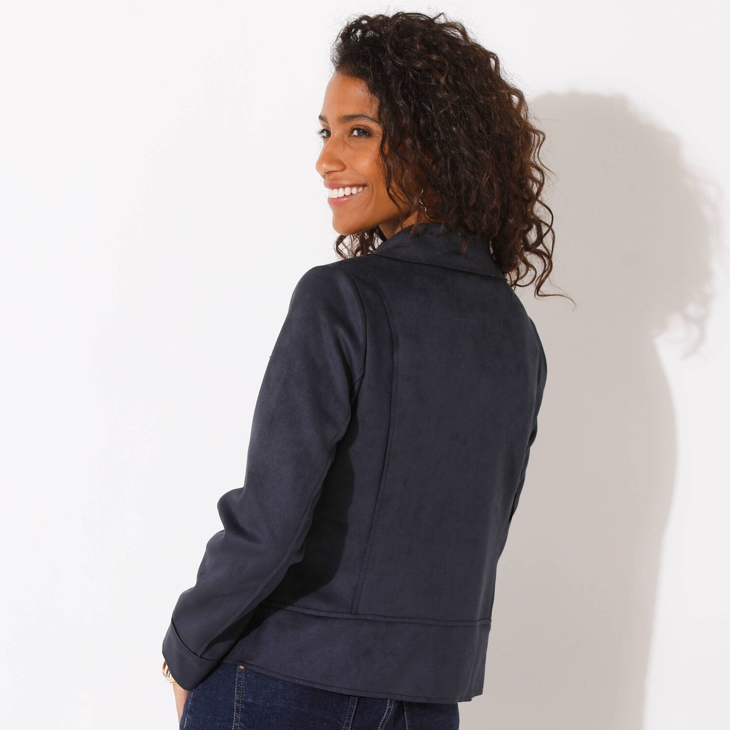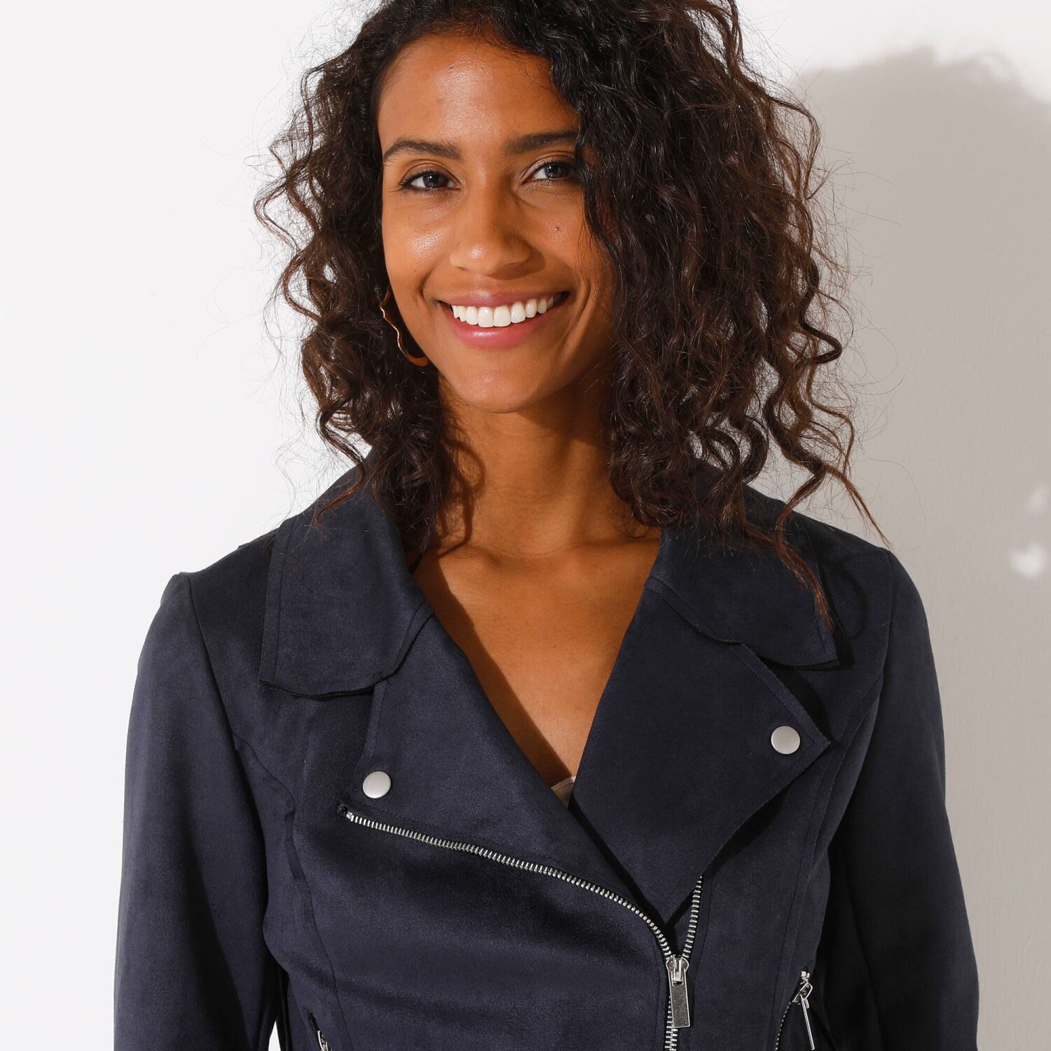To idealna kurtka na obecny sezon! Zaufaj modnemu krojowi perfecto, miękkiej imitacji zamszu, detalom z zamkami i soczystym kolorom. Kołnierz kostiumowy zapinany na zatrzaski. Przód w kroju księżniczki. Marszczenia na ramionach z tyłu. Zapięcie na zamek błyskawiczny. 2 ukośne kieszenie zapinane na zamek. Długie rękawy. Imitacja zamszu. Można prać w pralce.