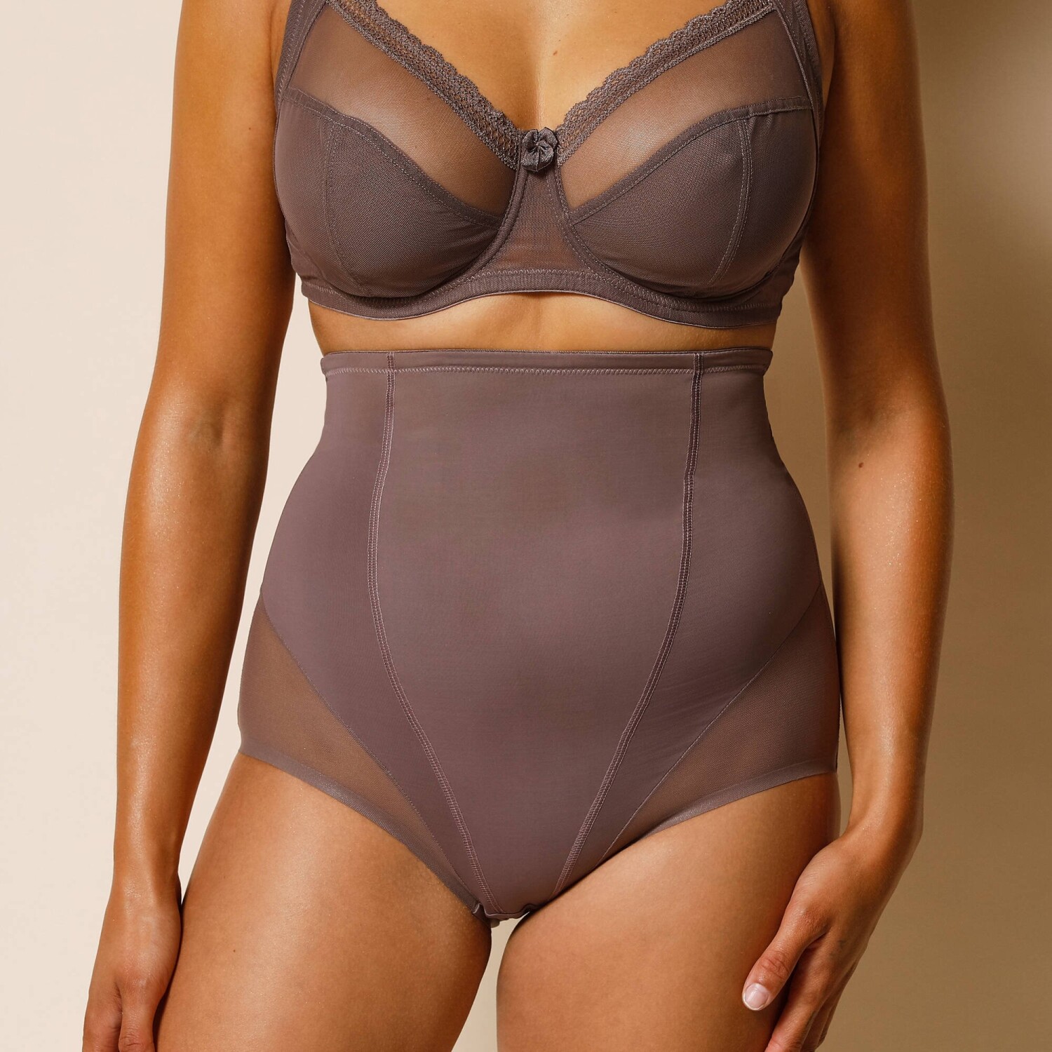 Majtki z wysokim stanem, z dzianiny i ściągającego tiulu