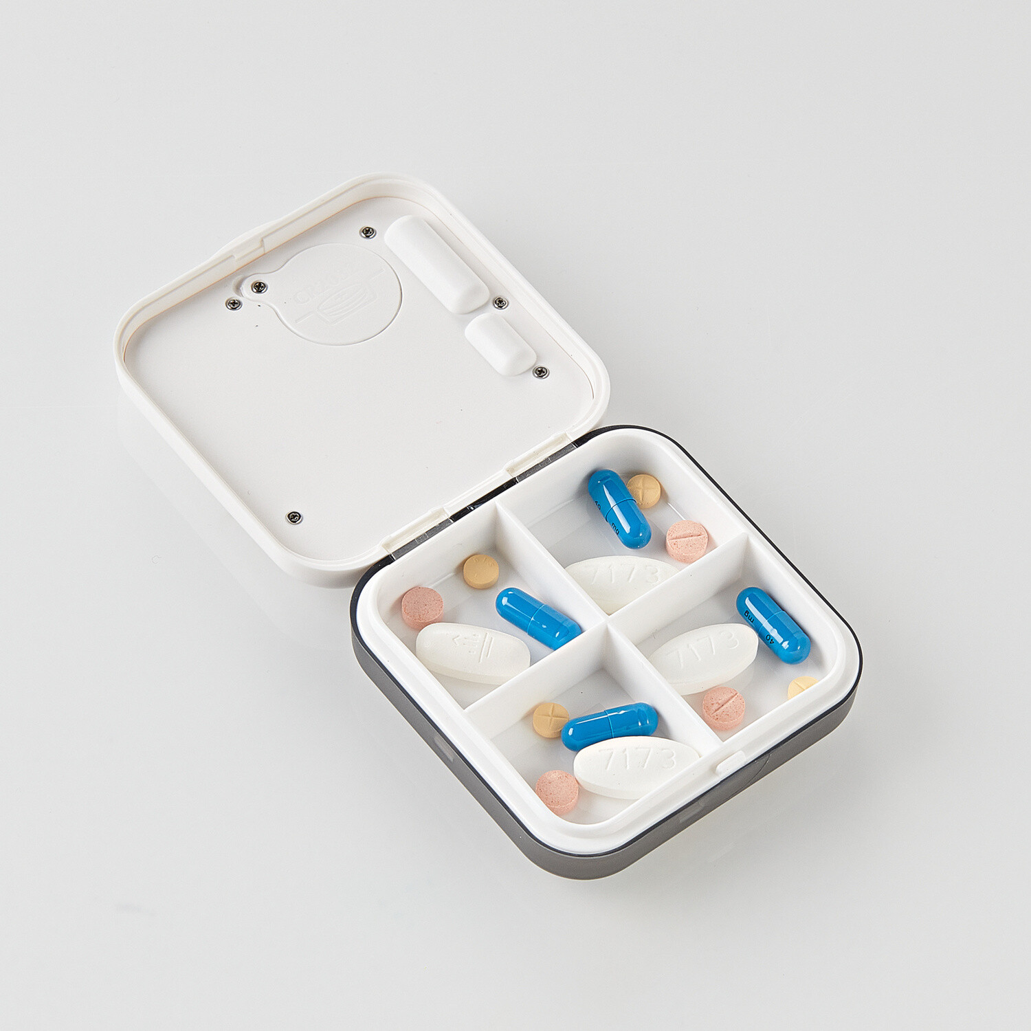 Nigdy więcej nie zapomnij wziąć ważnych leków: Planer tabletek do przygotowania dawki na tydzień. Z alarmem świetlnym i dźwiękowym we właściwym czasie. Odłączany kontroler przypomnień do zabrania ze sobą.