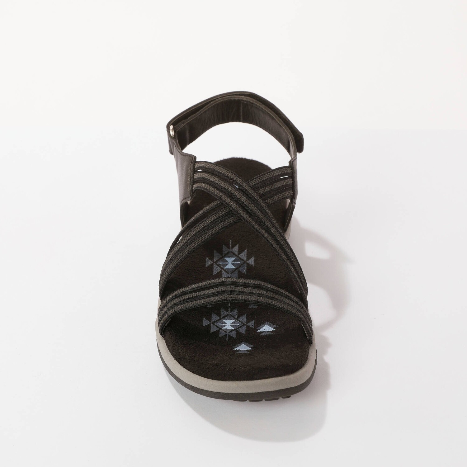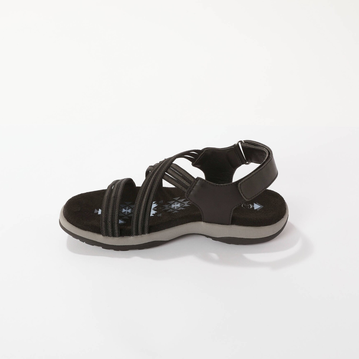 Ciesz się uczuciem komfortu i wsuń się w te miękkie sandały. Elastyczne i lekkie. Regulowane zapięcia na rzep wokół kostki i z przodu. Wygodny klinowy obcas.