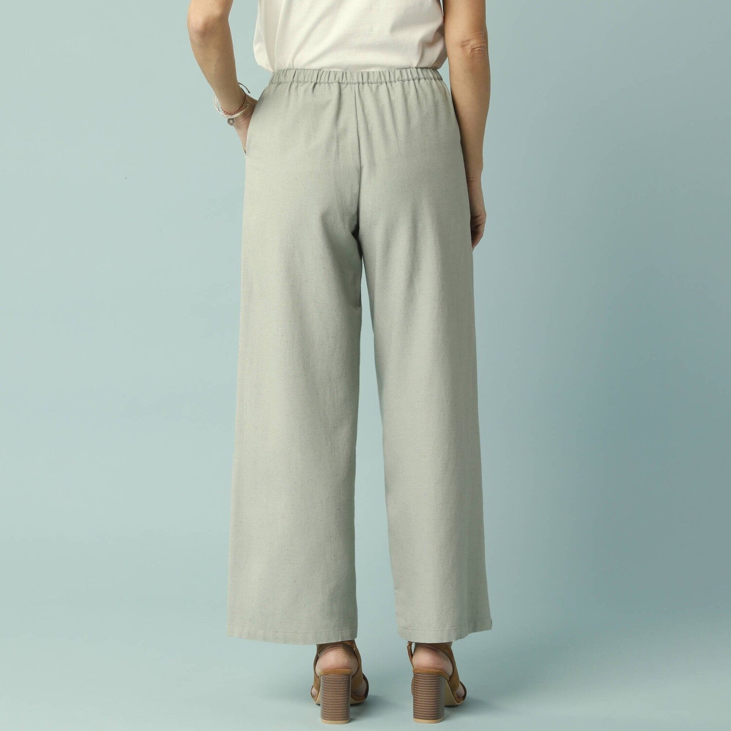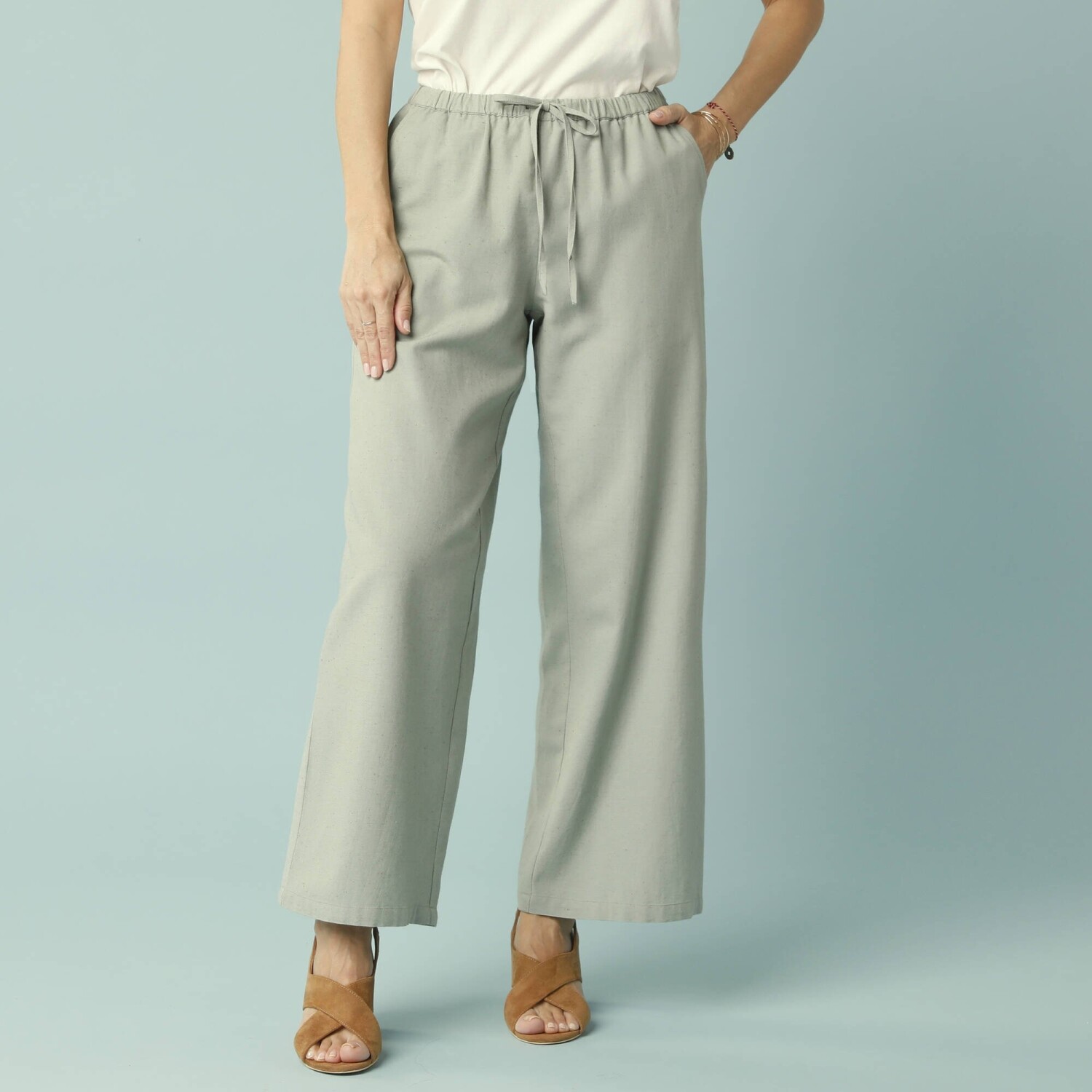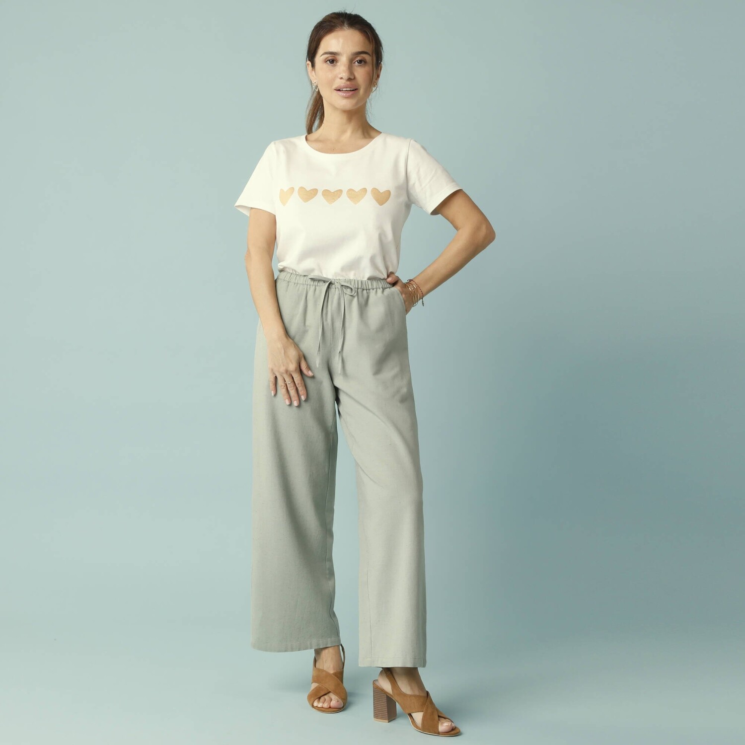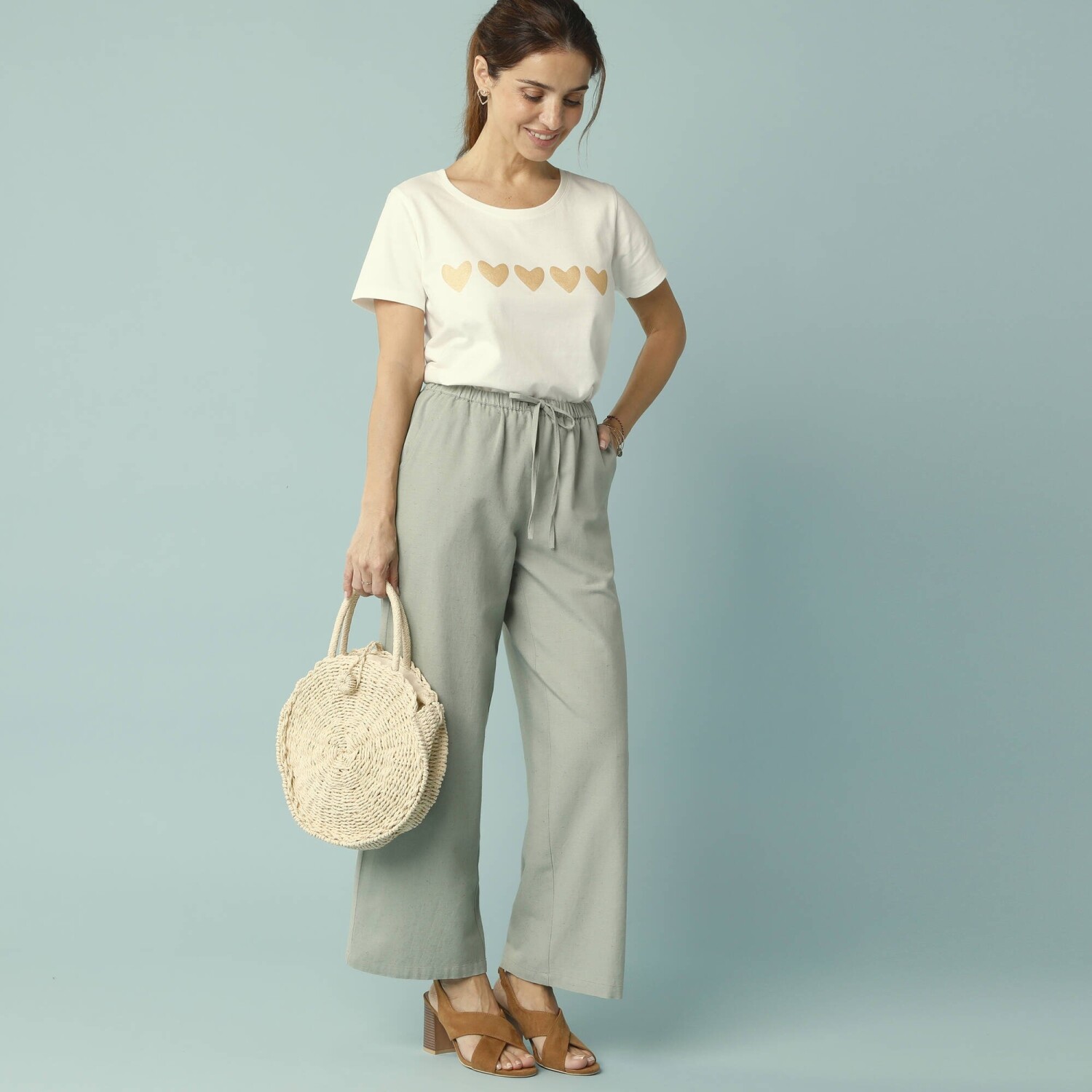 Spodnie z szerokimi nogawkami dla drobnej budowy ciała, wiskoza-bawełna-len