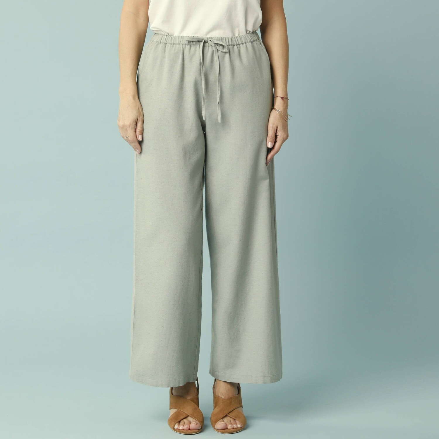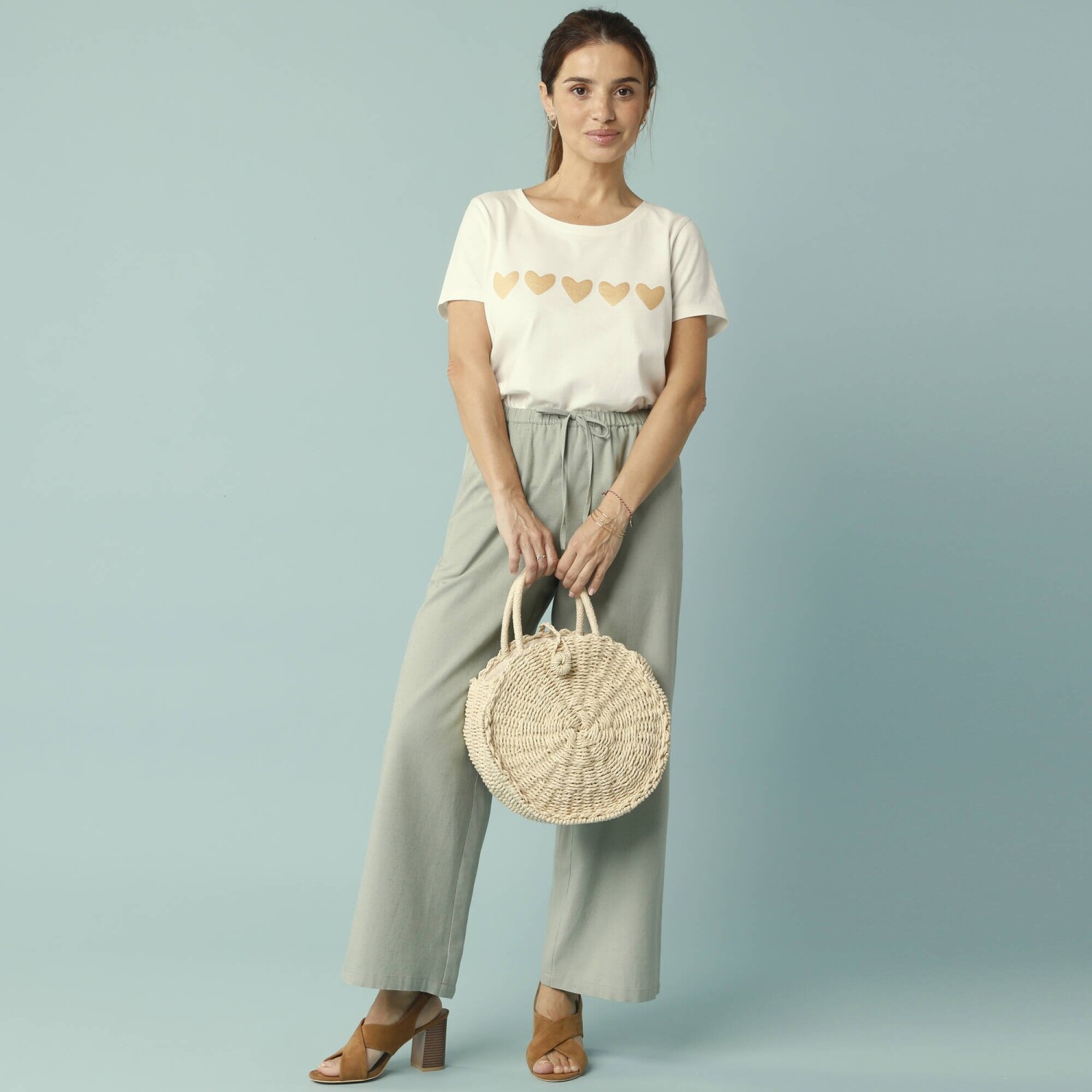Oferujemy szerokie spodnie proporcjonalnie zaprojektowane do drobnej sylwetki, wykonane z oryginalnej mieszanki wiskozy, bawełny i lnu. Idealny dla osób o wzroście 150-160 cm. Elastyczne i przewiewne. Całkowicie elastyczna talia. Sznurek ściągający umożliwiający regulację na miejscu. 2 przednie kieszenie wpuszczane. Wykończone obszyciem. Można prać w pralce.