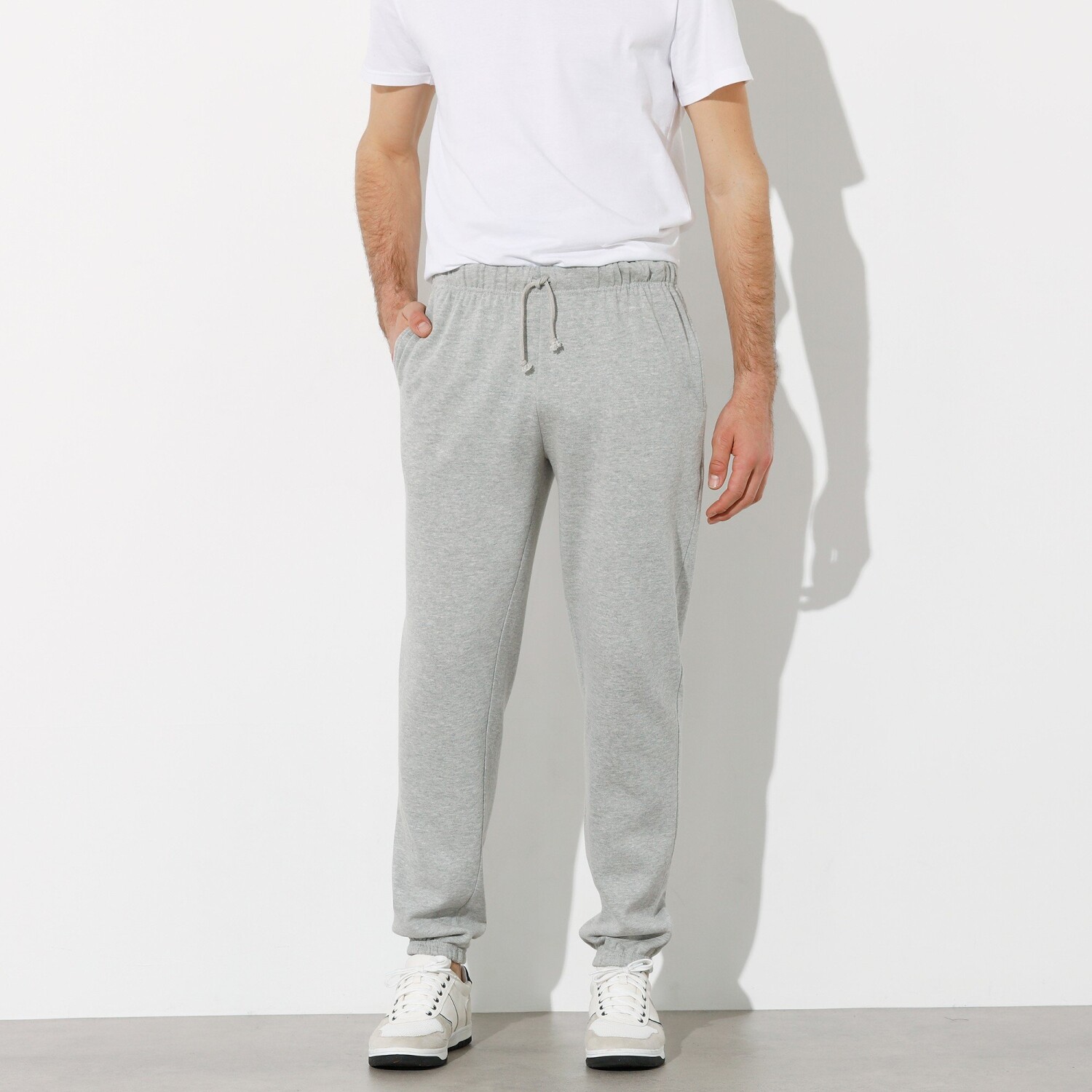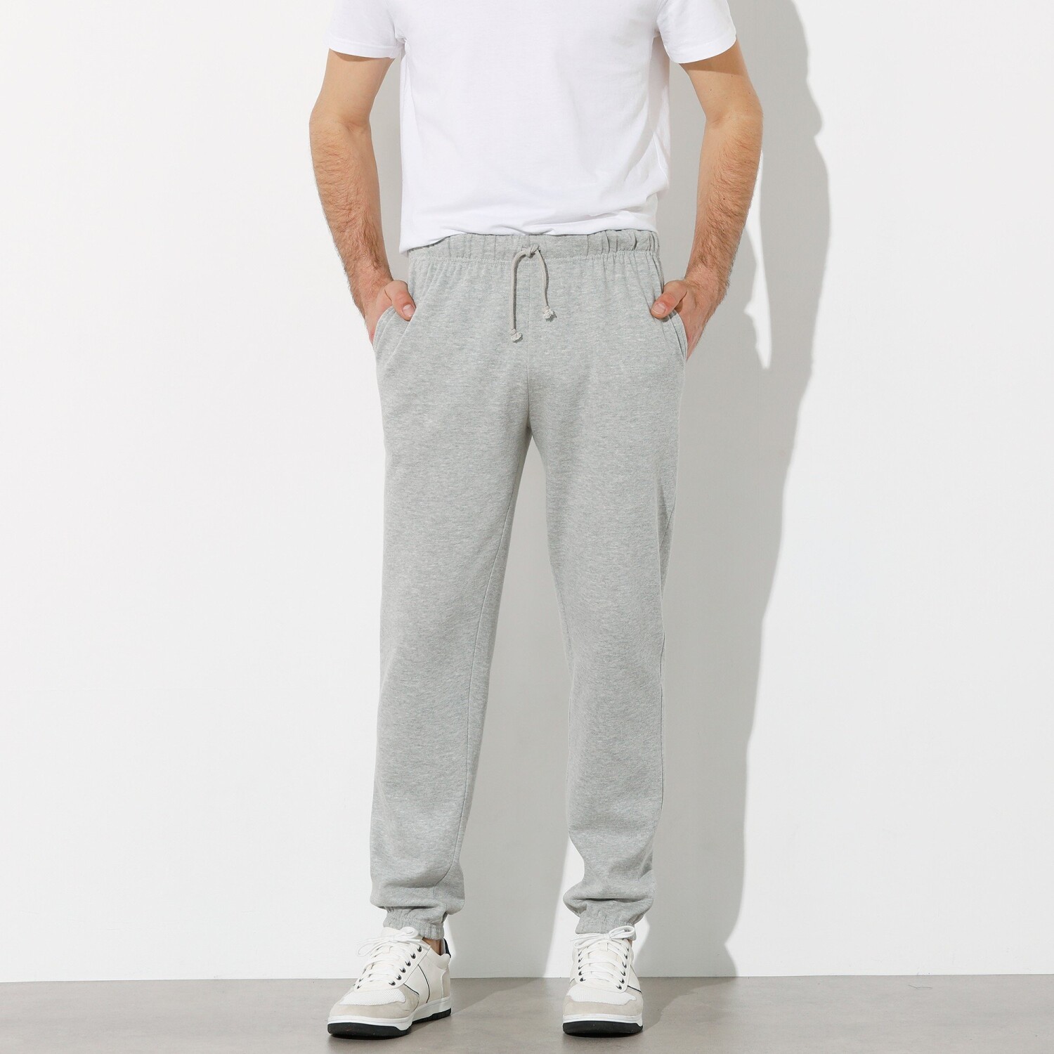 Wypróbuj miękki molton! Spodnie męskie z elastycznym pasem i sznurkiem ściągającym. Po bokach 2 skośne kieszenie. Dolna krawędź wykończona elastycznym obszyciem. Spodnie są przeznaczone do noszenia w czasie wolnym.
