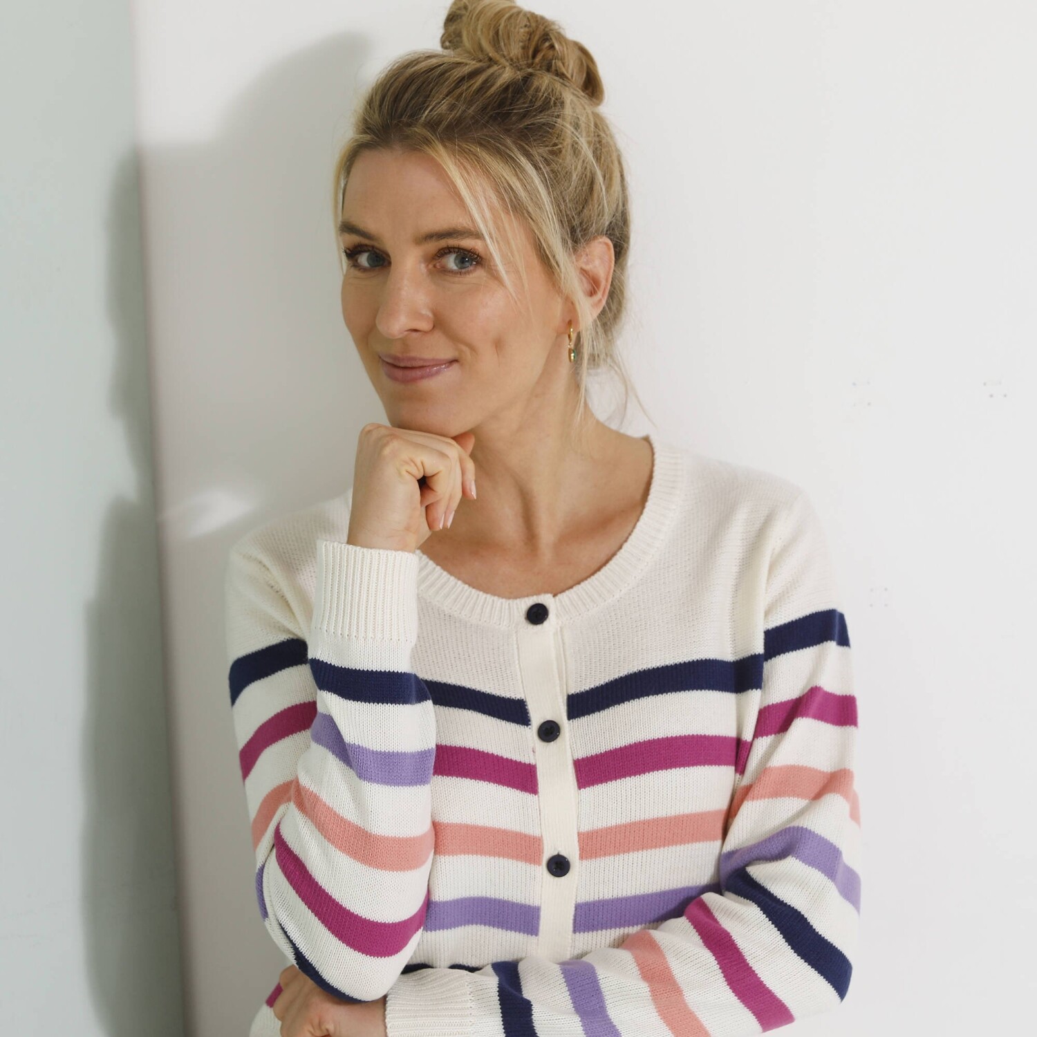 Sweter w paski z guzikami
