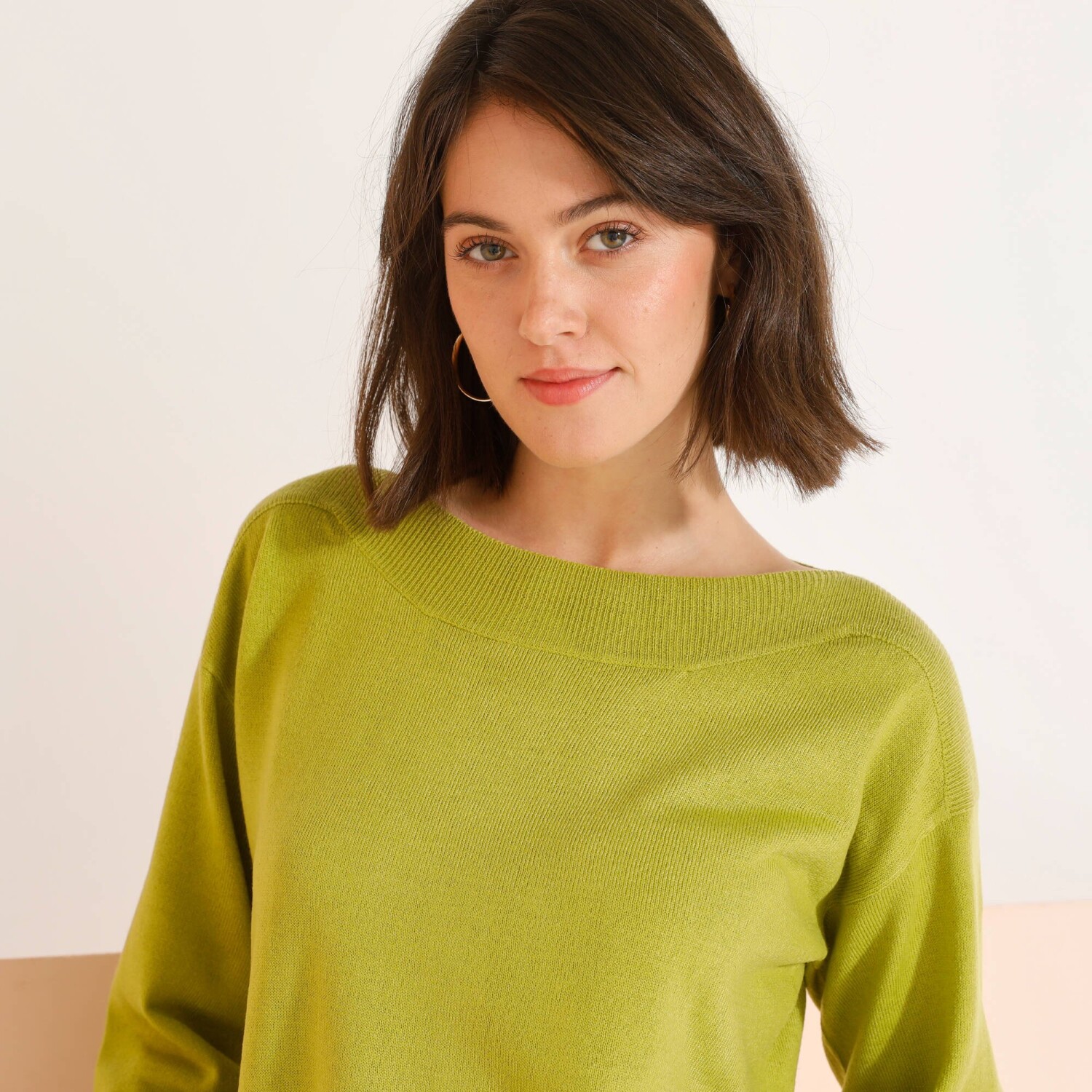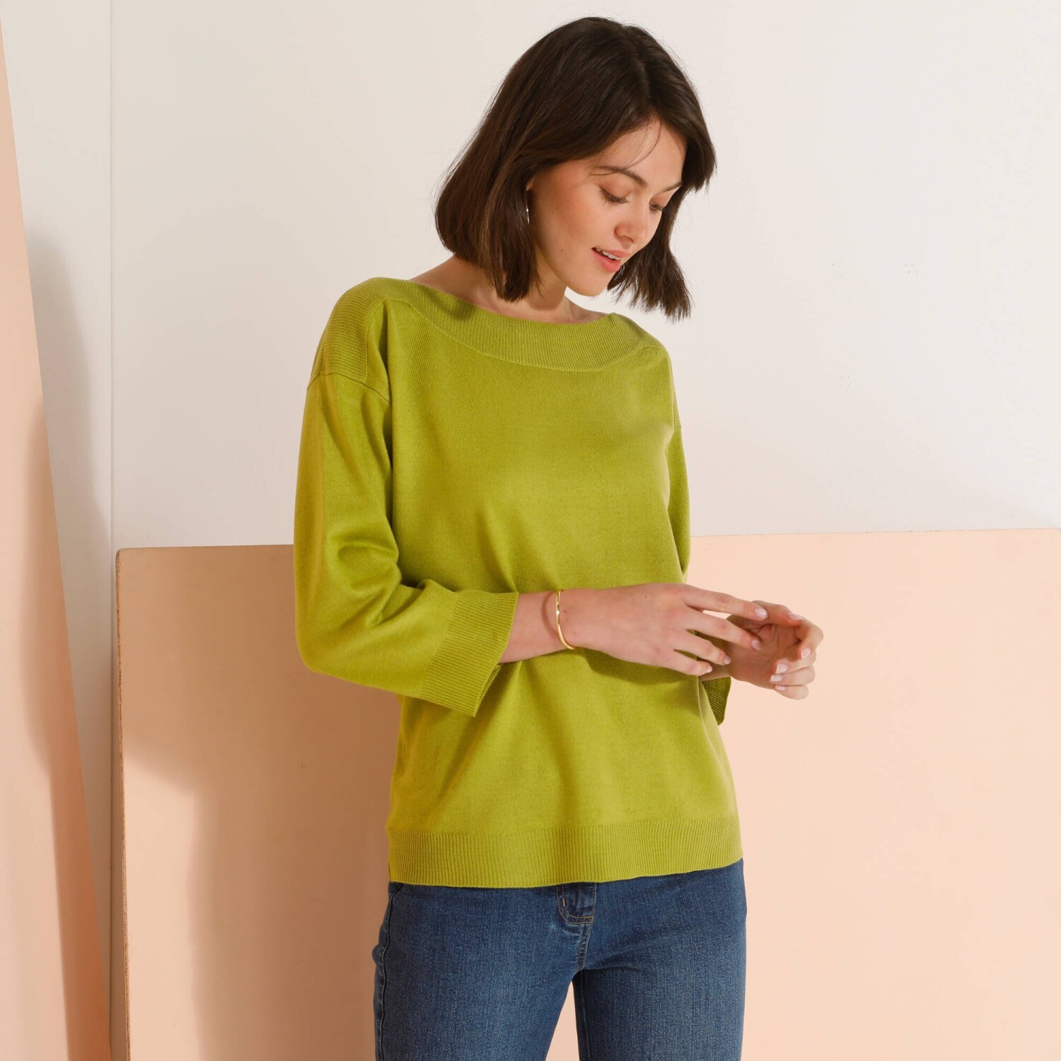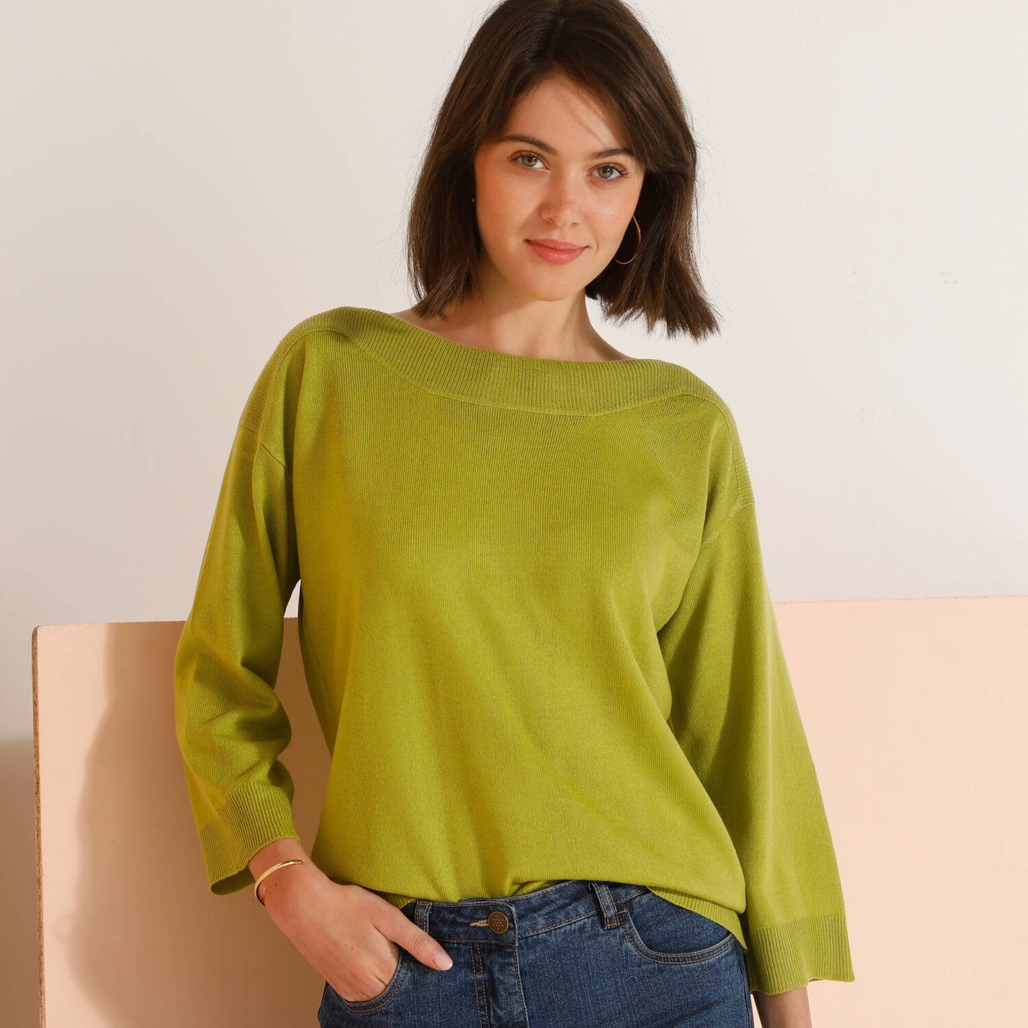 Zaloguj ZarejestrujDekolt w łódkę, moherowa dzianina, wygodne dopasowanie - zakochaj się w tym pięknym swetrze. Prosty krój. Miękka w dotyku dzianina kaszmirowa. Dekolt w łódkę. Rękawy 3/4. Prosty dół. Prążkowane wykończenia rękawów, dołu i dekoltu. Można prać w pralce.