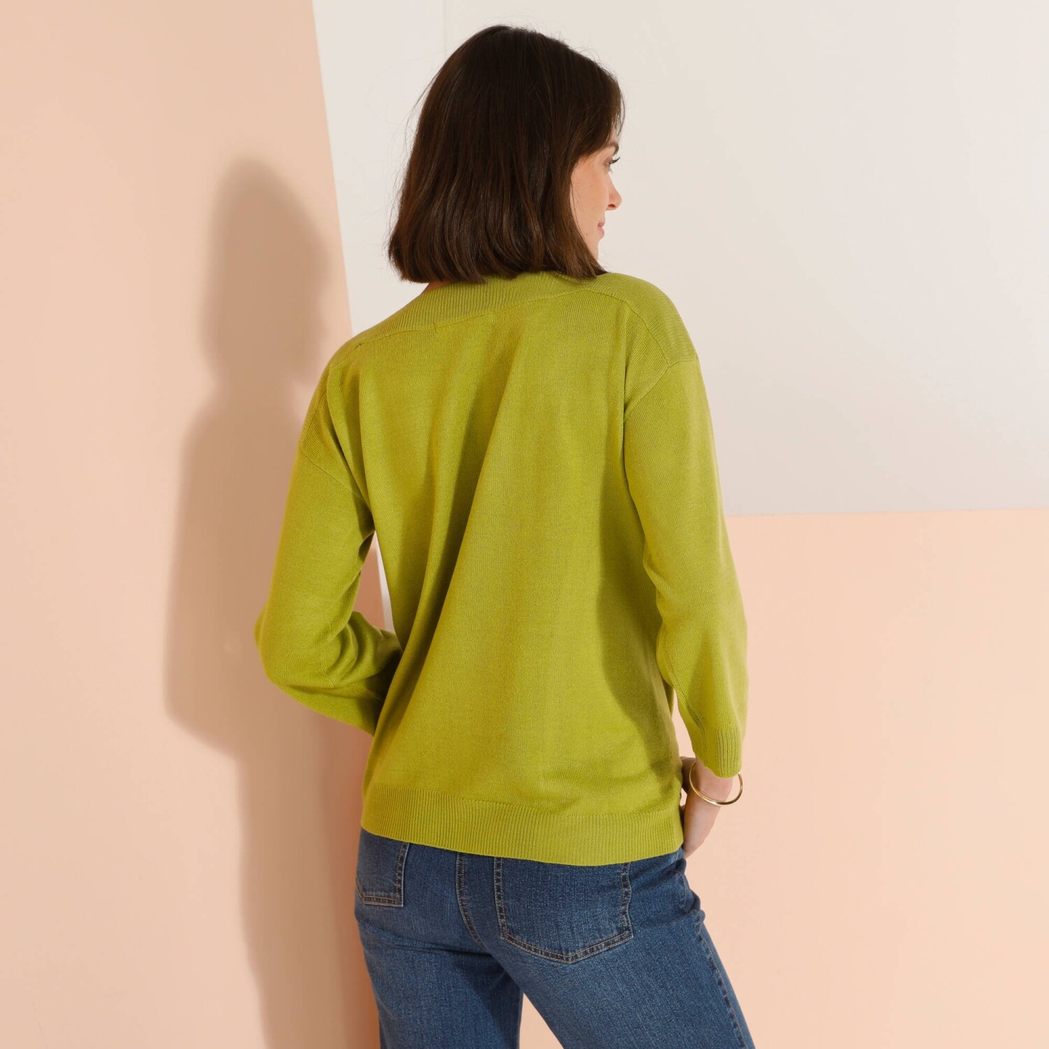 Sprawdź, jak świetnie poczujesz się w eleganckim swetrze z miękkiego materiału! Rozkloszowany krój, który pasuje do każdej sylwetki. Lekko zaokrąglony dekolt V. Długie rękawy. Przedłużony krój. Łatwy w pielęgnacji, można prać w pralce.