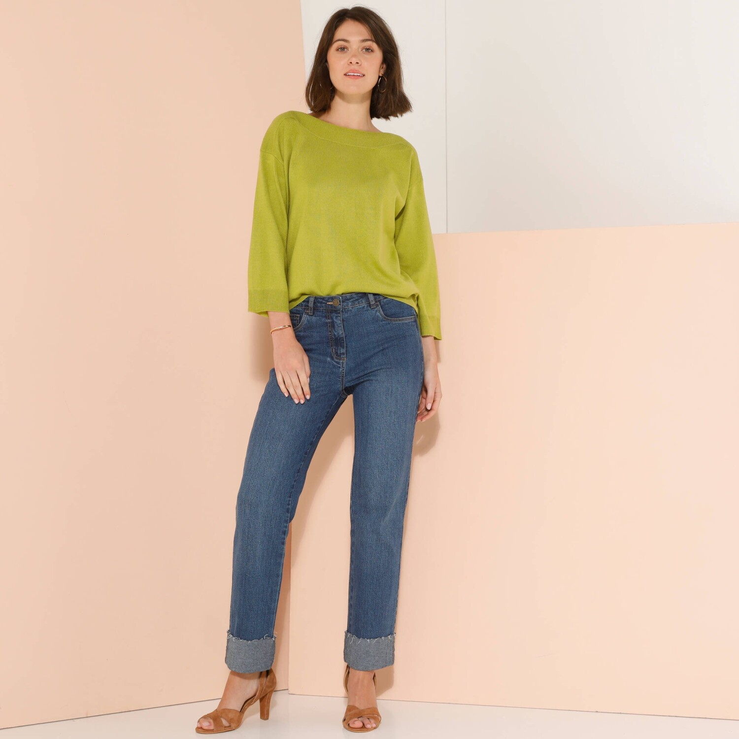 Okrągły sweter z miękkiej w dotyku dzianiny przekonał nas do siebie. Prosty krój ułatwiający utrzymanie. Okrągły dekolt. Długie rękawy. Prosty dół. Można prać w pralce.