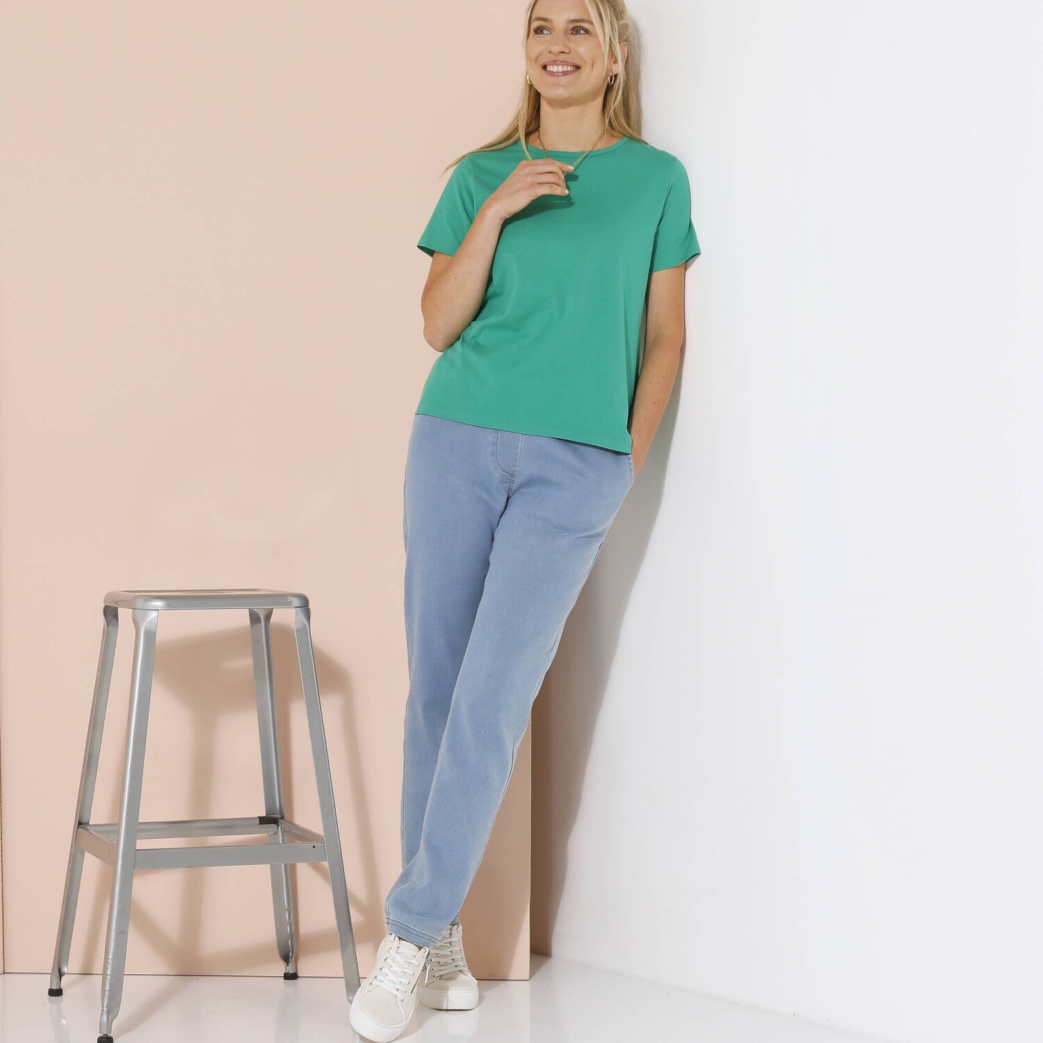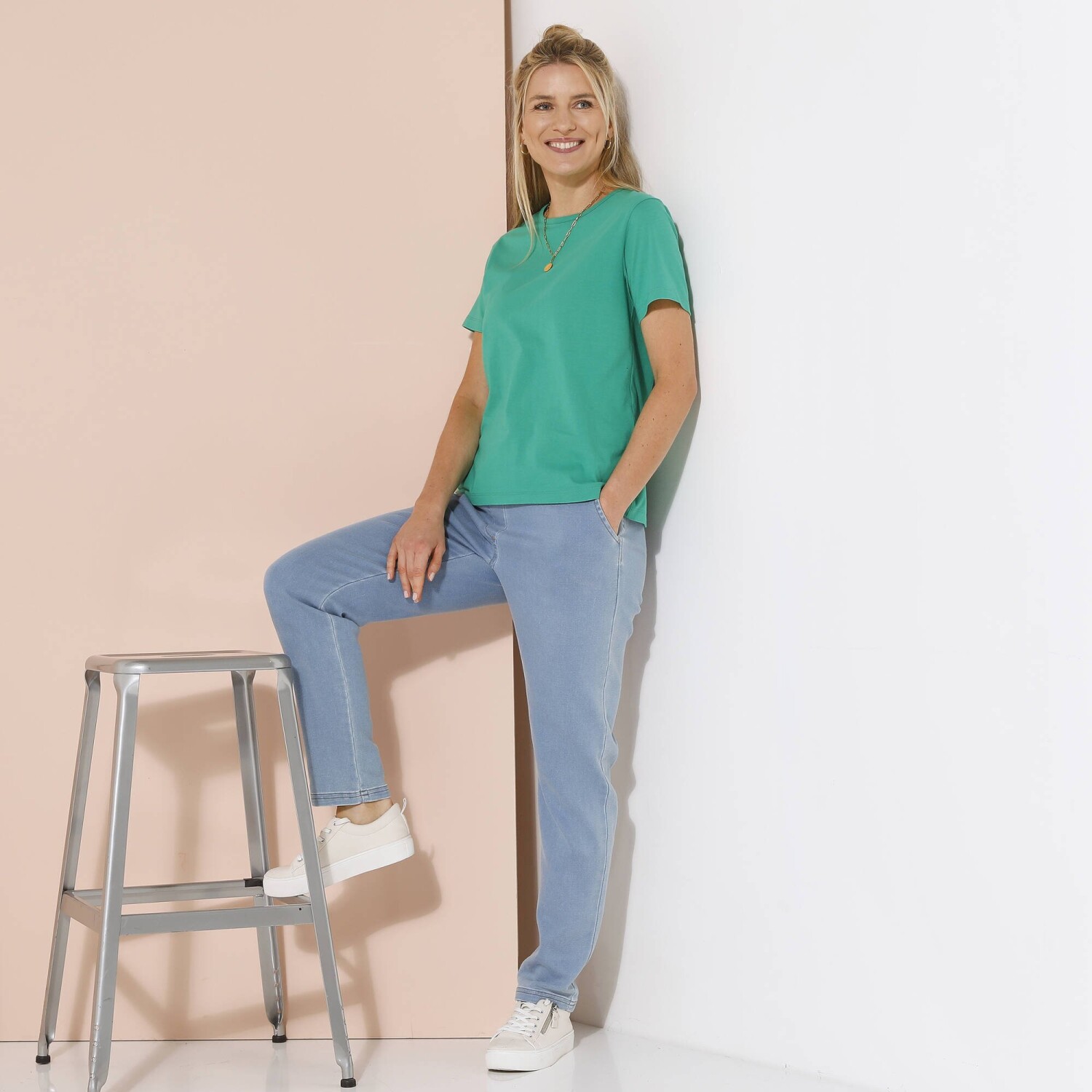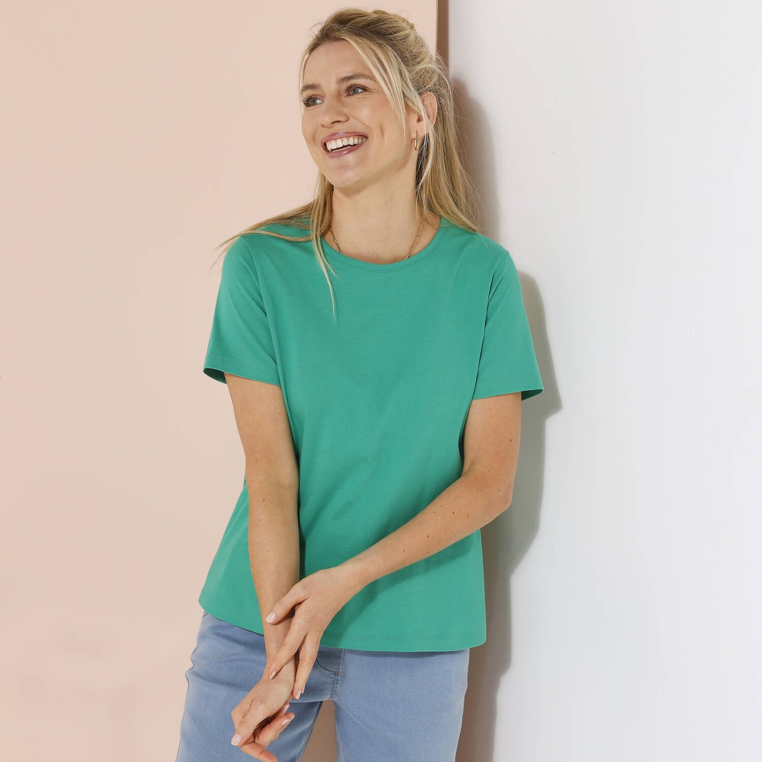 Lśniąca dzianina i krój bluzki: ta elegancko wykonana koszulka rozjaśni Twoje dni. Dzianina z błyszczącą nicią. Rękawy 3/4. Bluzka wykończona ściągaczem. Można prać w pralce.