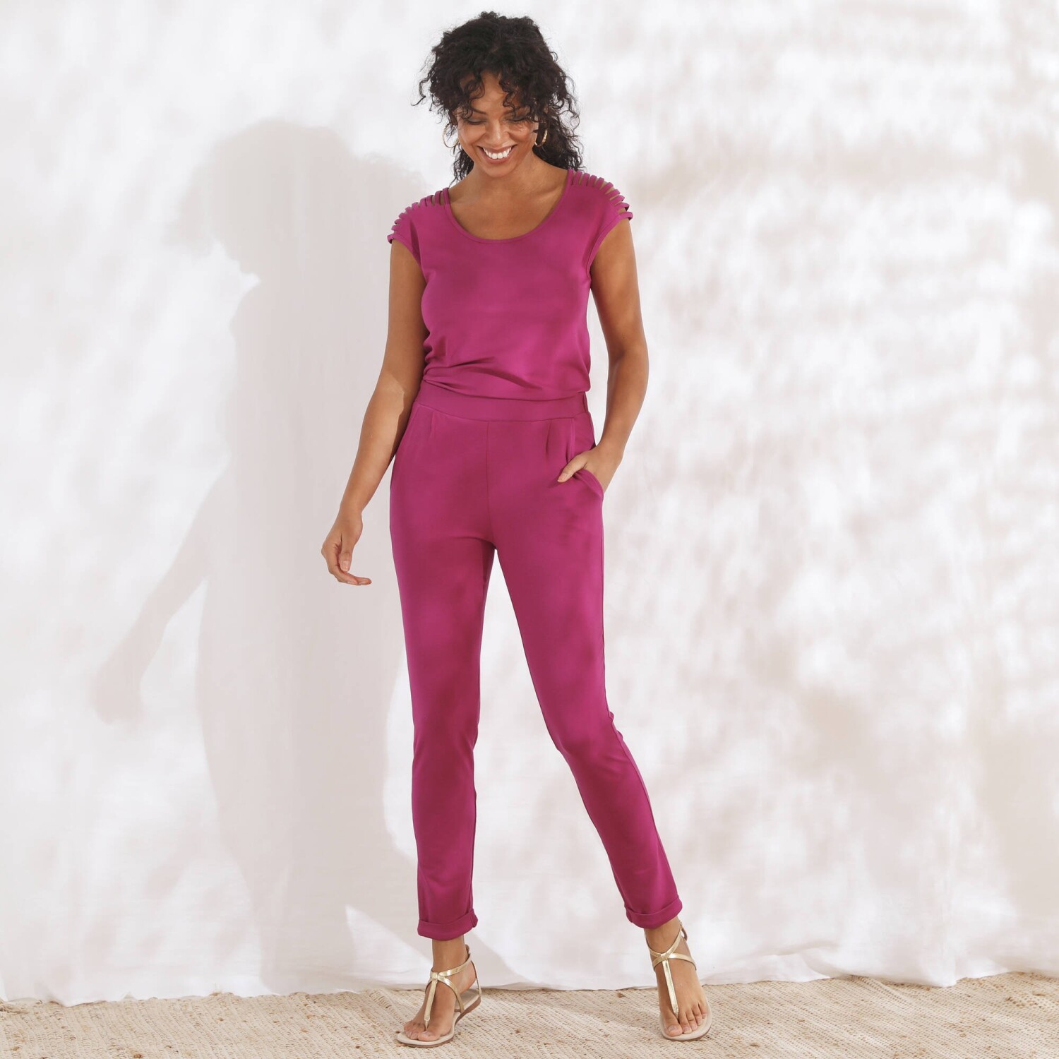 Uwodzicielskie ściągacze na ramionach, modny prosty krój i elastyczna dzianina - oto zalety tej damskiej koszulki! Wykonany z łatwej w pielęgnacji, przewiewnej dzianiny. Wygodny prosty krój. Okrągły dekolt. Stały ściągacz na ramionach tworzący krótkie rękawy. Prosty dół. Jednolity kolor. Standard 100 według Oeko-Tex (nr CQ 1216 / 3 IFTH). Ten znak identyfikuje produkty tekstylne, które zostały poddane testom laboratoryjnym pod kątem szerokiej gamy szkodliwych substancji, a produkt jest bezpieczny poza obowiązującymi normami. Można prać w pralce.