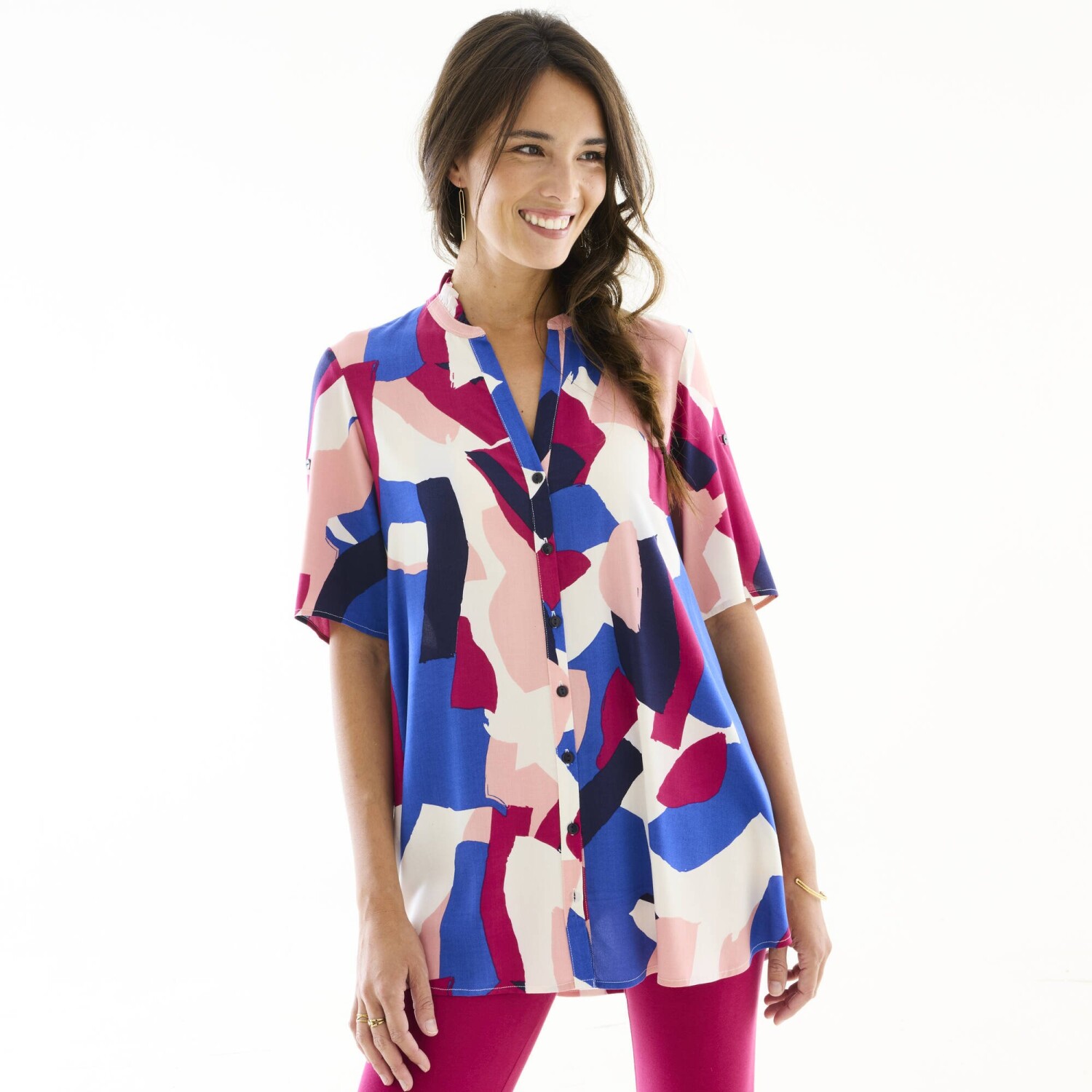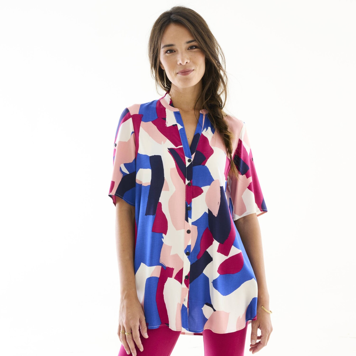 Tunika z dekoltem zapinanym na guziki i nadrukiem graficznym